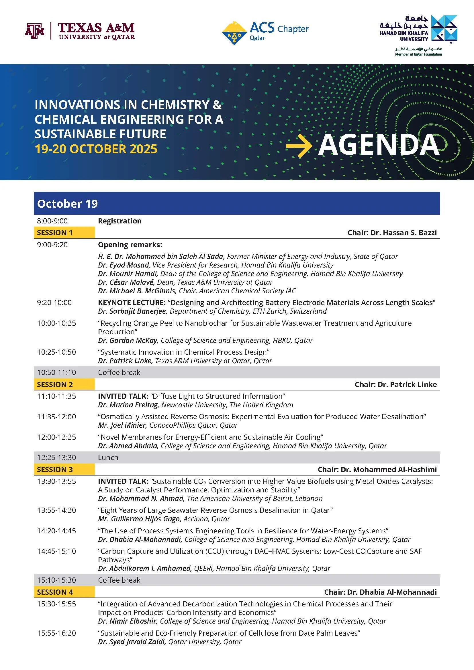 Chair, Industry and Government Advisory Board, Hamad Bin Khalifa University